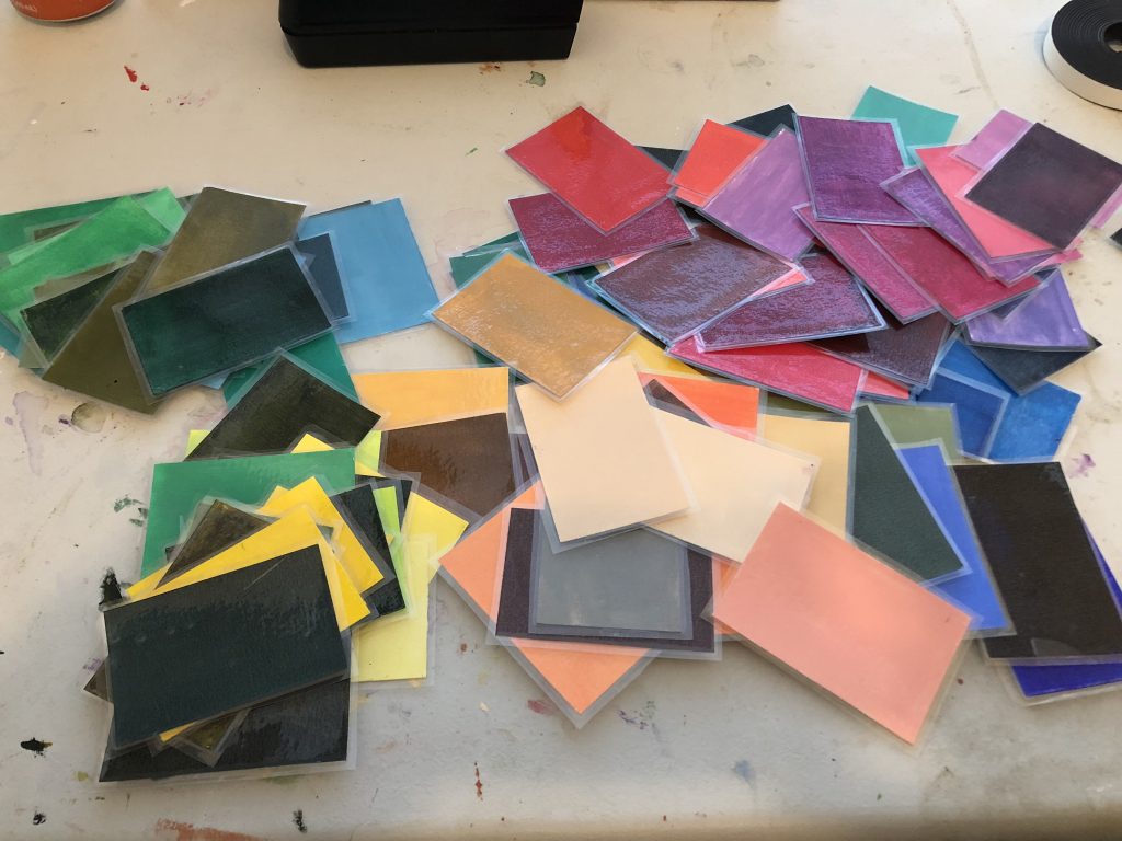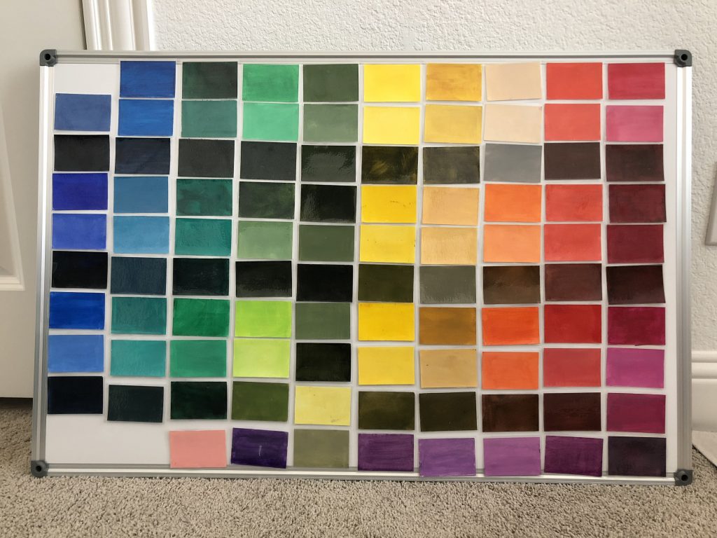 Everybody has a favorite adhesive, right? I made my own set of samples for some acrylic paints to use as a quick reference, but they’ve just been a disorganized mess. So I laminated them and added magnetic tape. Boom. Organized chaos.